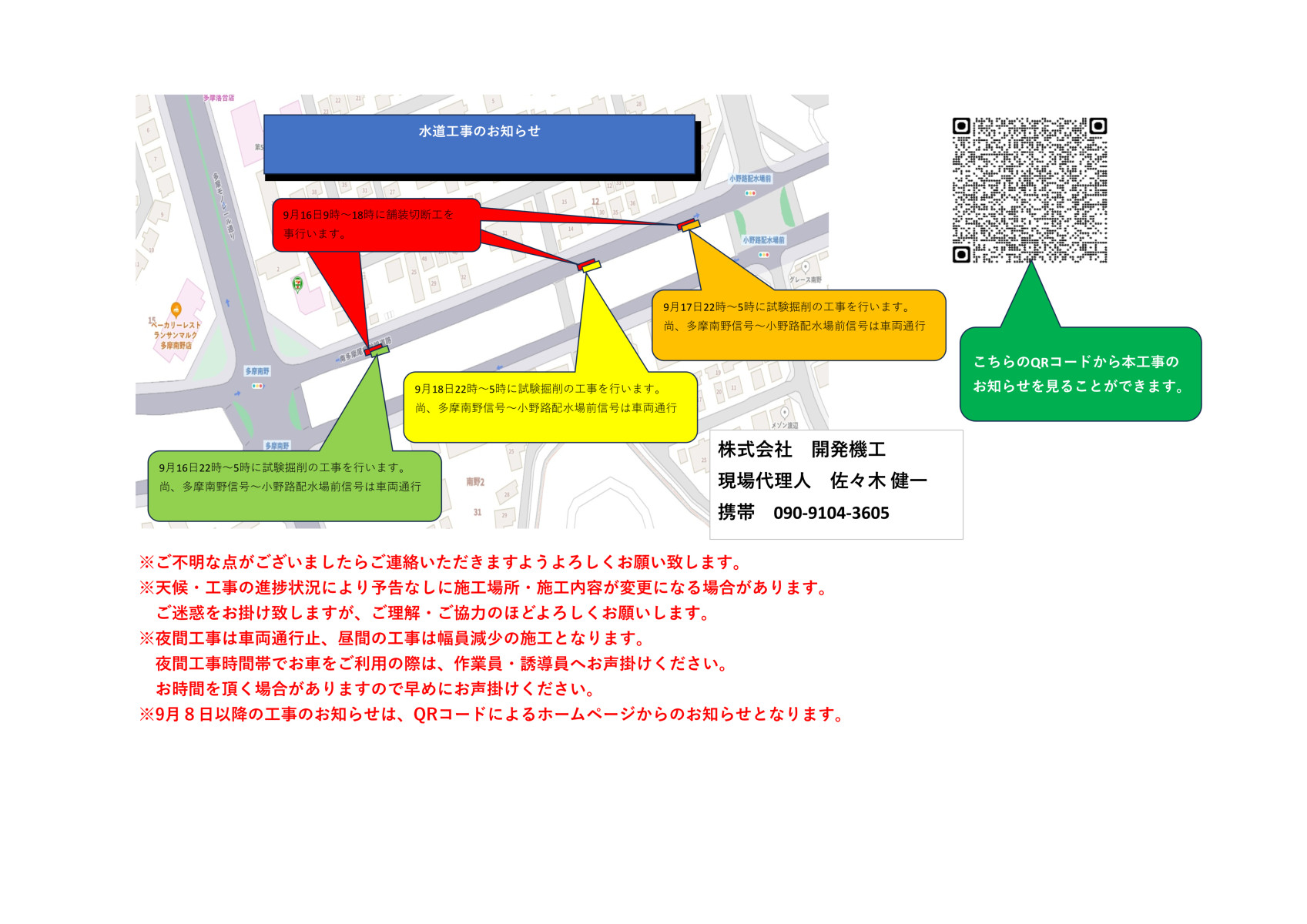 工事名 | 多摩市落合六丁目地先配水本管(400㎜)布設替工事 |